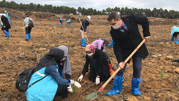 Fidan dikimi öncesi konu ile ilgili açıklamalarda bulunan Sinop Vali Vekili Orhan Gazi Karakaş; “Özellikle son 20 yılda dünyada orman varlığını en hızlı artıran ülkelerdeniz. Aynı zamanda, mevcut yıllanmış ormanlarını yenileyerek daha sağlıklı hale getirmek için de devletimiz ve ilgili teşkilatımız olan Orman Genel Müdürlüğü, çok önemli çalışmalar yürütmektedir. ‘‘Geleceğe Nefes’’ kampanyası ile özellikle vatandaşlarımızı da bu sürecin içerisine katmak adına bugün burada toplanmış bulunuyoruz. Ormanlarımız ülkemizin akciğerleri, en büyük zenginlik kaynaklarımızdandır. Ormanlarımız yaşam kaynağımızı oluşturan ve bize her şeyi sağlayan toprağın bekçileridir. Diğer taraftan yaşamımızı değerli kılan, yaban hayatının da yegane koruyucusudur. Ormanlarımız yurdumuzun süsü, güzelliği ve bereketidir. Bizim için orman, hava ve su gibi ihtiyaç duyduğumuz doğal kaynakların en başında gelmektedir. Dünya yaşamı için vazgeçilmez, canlılar için hayati öneme sahip ormanlarımız, yağışların oluşmasını, havanın temizlenmesini ve iklimlerin düzene girmesini de sağlamaktadır. Ormanlar sadece görüntü olarak değil, günlük yaşamımızın da bir parçası olarak önemli alanlardır. Gelecek nesillere doğal miras olarak bırakacağımız, doğamıza, ekonomimize, bizlere büyük katkıları olan ormanlarımızı korumak, geliştirmek, ağaç dikerek yeni orman alanları oluşturmak ve gelecek nesillere erken yaşlarda ağaç sevgisini, orman sevgisini aşılamak hepimizin görevi ve sorumluluğudur. Geçmişte yapılanlar nasıl ki bugüne yansıyorsa, bugün yapılanların da geleceğe yansıması mutlaka olacaktır. Bundan da ülkemiz ve insanımız kazançlı çıkacaktır. Bizler de bugün burada Türkiye'nin en kuzey noktasından, güzel Sinop’umuzdan Orman İşletme Müdürlüğümüz tarafından hazırlanan 36 Hektar (360 Dönüm) alana, 40 Bin fidanın dikimi için start vereceğiz. Sürecin devamında da İlimiz genelinde 300 Bin fidanın toprakla buluşmasını sağlamış olacağız. Saatlerimiz 11.11’i gösterdiğinde ise ilk fidan dikimini gerçekleştirerek ‘‘Geleceğe Nefes’’ kampanyasına destek olacağız. Diktiğimiz her fidanın geleceğimiz için yeni bir can, yeni bir nefes olmasını diliyor. Bu çalışmaların yapılmasında başta talimatlarıyla Sayın Cumhurbaşkanımıza, Sayın Tarım ve Orman Bakanımıza, Orman Genel Müdürlüğü teşkilatımıza, ayrıca bugün burada bizleri yalnız bırakmayan tüm misafirlerimize, gençlerimize, vatandaşlarımıza teşekkür ediyor, hep böyle hayırlı vesilelerle bir araya gelmemizi temenni ediyorum.” İfadelerine yer verdi.