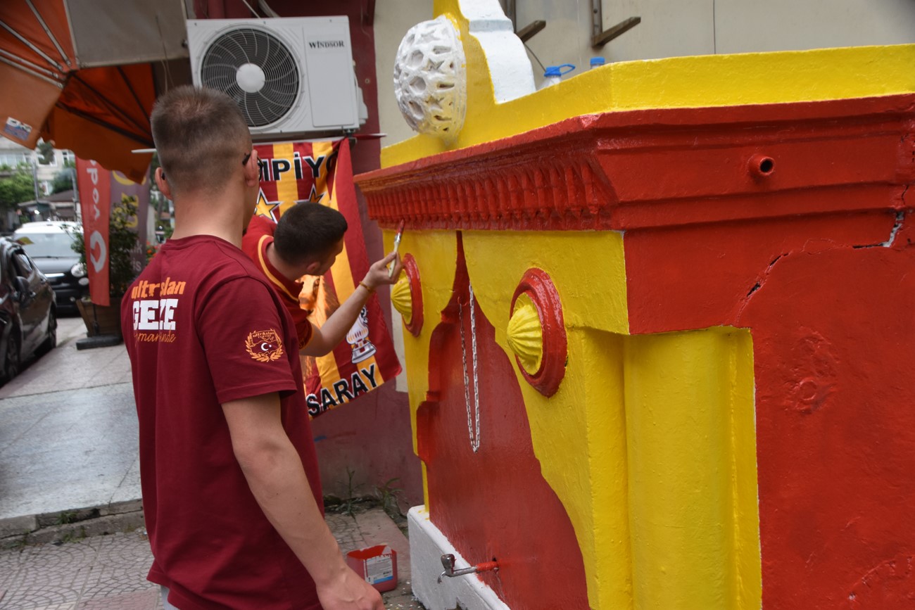 Çeşmeler, şampiyon Galatasaray'ın renklerine yani sarı-kırmızı boyandı.