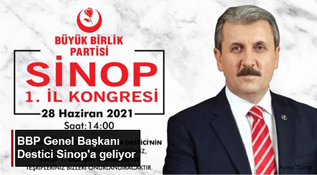 Sinop Kültür Merkezi'nde saat 14.00'te başlayacak kongreye BBP Genel Başkanı mustafa destici de katılacak. Kongreden bir gün önce Sinop'a gelecek olan Destici, bir dizi ziyaretlerde bulunacak. Destici, ilk olarak Pazar günü saat 15.00'te Türkeli ilçesini ziyaret edecek. Burada partisinin ilçe başkanlığının açılışını gerçekleştirecek olan Destici, esnaflarla da bir araya gelecek. Temaslarını Pazartesi günü Sinop kent merkezinde sürdürecek olan Destici, Sinop Valiliği'ni ve Sinop Belediyesi'ni ziyaret edecek. Destici, esnaf ziyaretinin ardından Kültür Merkezi'nde saat 14.00'de başlayacak kongreye katılacak.