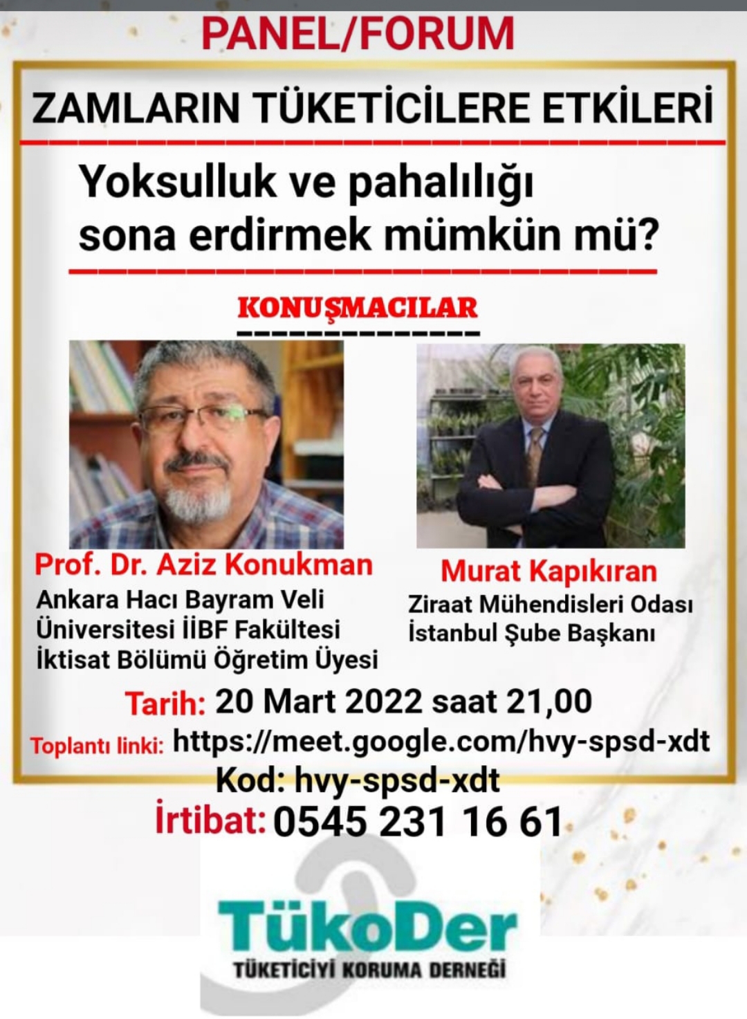 PANEL: Hemşerimiz Pof. Dr. Aziz Konukman TUKODER'in 20 Mart 2021 günü saat 21.00'de internet üzrinden " düzenlediği Zamların Tüketicilere Etkileri" konulu forumda sizlerle birlikte olacak.