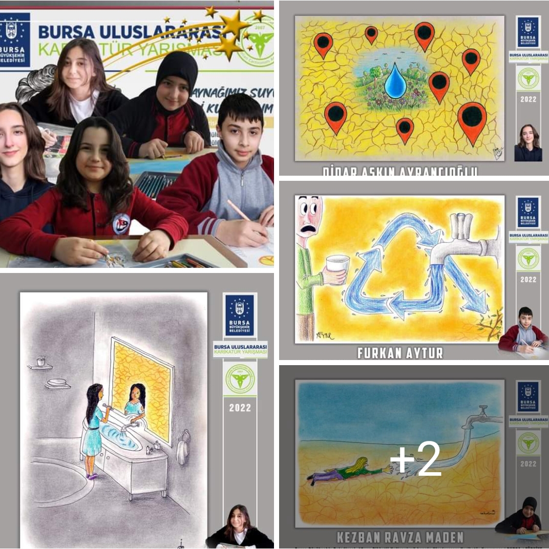 Aşkın Ayrancıoğlu'nun öğrencileri Didar Aşkın, Deniz Nur, Furkan, Zeynep Nur ve Kezban Ravza' Bursa Uluslararası Karikatür Yarışması'nda "Başarı Ödüllerini topladı. ,