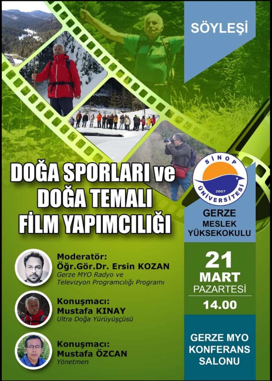 Gerze Yüksek Meslek Okulu'nun 21 Marttaki " Doğa Sporları ve Doğa Temalı Film Yapımcılığı" konulu söyleşisi ilgi ile izlendi. ( hbr: Ş.Z.Demirel)