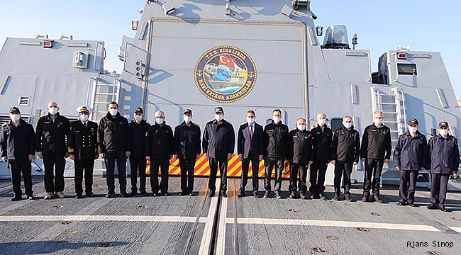 Vali Erol Karaömeroğlu, karşılamanın ardından Deniz Kuvvetleri Komutanı Oramiral Adnan Özbal ile birlikte TCG. Kınalıada Gemisinde Roketsan Mühendisleri ile hatıra fotoğrafı çektirdikten sonra Deniz Kuvvetleri Komutanı Oramiral Adnan Özbal’ı Sinop Havalimanından uğurladı.