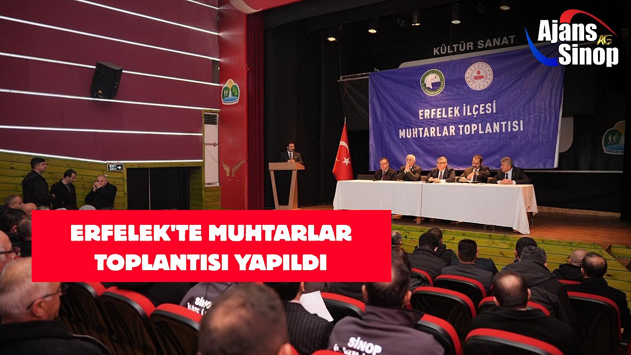 Sinop Valisi Dr. Mustafa Özarslan’ın başkanlığında “Erfelek/2026 Muhtarlar Toplantısı” gerçekleştirildi. Toplantıda Erfelek Kaymakamı Ali Tuğrul Yıldız, Erfelek Belediye Başkanı Mehmet Uzun, İl Genel Meclis Üyeleri Ziya Dilsiz ve Adem Akgöz, muhtarlar ve ilgili kurum müdürleri hazır bulundu.