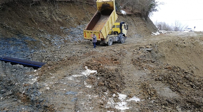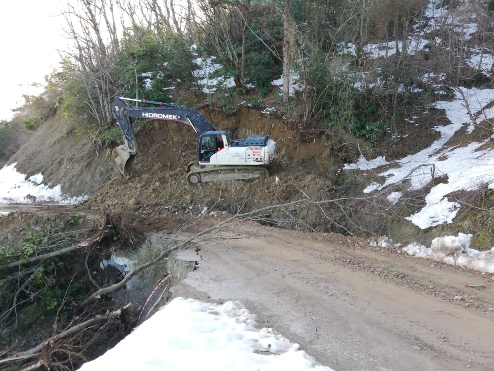Sinop İl Özel İdare Ekipleri Yusuflu köyünde meydana gelen heyelan sonrası yol açma çalışması gerçekleştirdi.