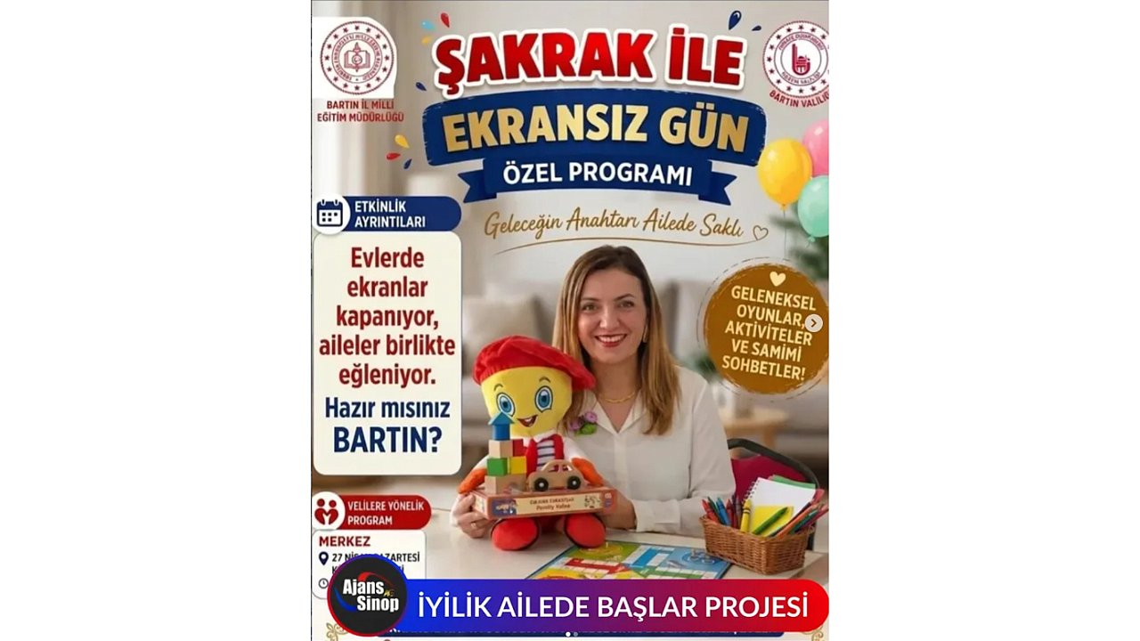 Sinoplu Araştırmacı Yazar TV Programcısı ve Yerli ve milli Kahraman Şakrak'ın yaratıcısı Ayşe Gül Kara Zorlu Başarılı çalışmalarına bir yenisini ekleyerek toplumun kanayan bir yarasına daha çözüm getirmek için harekete geçti. Şakrak ile "İyilik Ailede Başlar" projesini Bartın'dan başlattı. Günümüzde artan ekran bağımlılığı, akran zorbalığı ve okullarda yaşanan şiddet olayları gibi toplumsal sorunlara dikkat çekmek amacıyla "İyilik ailede başlar adlı yeni sosyal sorumluluk projesini hayata geçirerek bir ilke daha imza atan Ayşe Gül Kara Zorlu kamuoyunun takdirini kazandı. Bartın'ın ardından projenin tüm Türkiye'de uygulanacağı açıklandı.