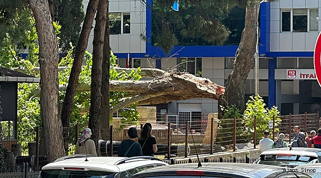 Sinop’ta Okullar Caddesi üzerinde yer alan Deniz Şehitleri Anıtı Bahçesi’nde ağaç devrildi.