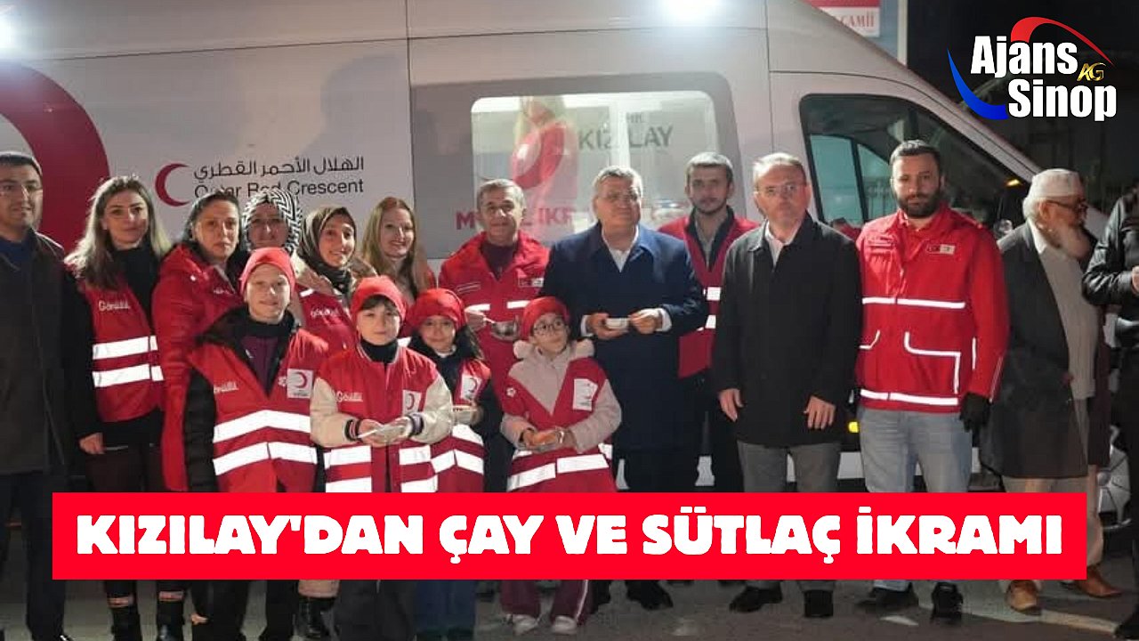 Kızılay Sinop Şubesi seyyar aracı ile Gelincik İzzet Ağa camiinde teravih namazından çıkan Sinoplular'a çay ve sütlaç ikramında bulundular.