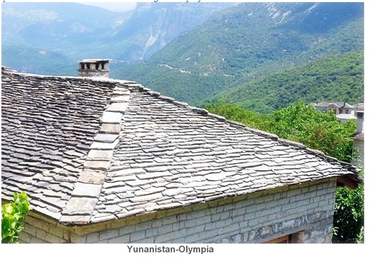 Orta Toroslar ve Çin de kayrak taş kaplamalı çatılar, tamamı taş duvarlı evlere uygulanmaktadır.