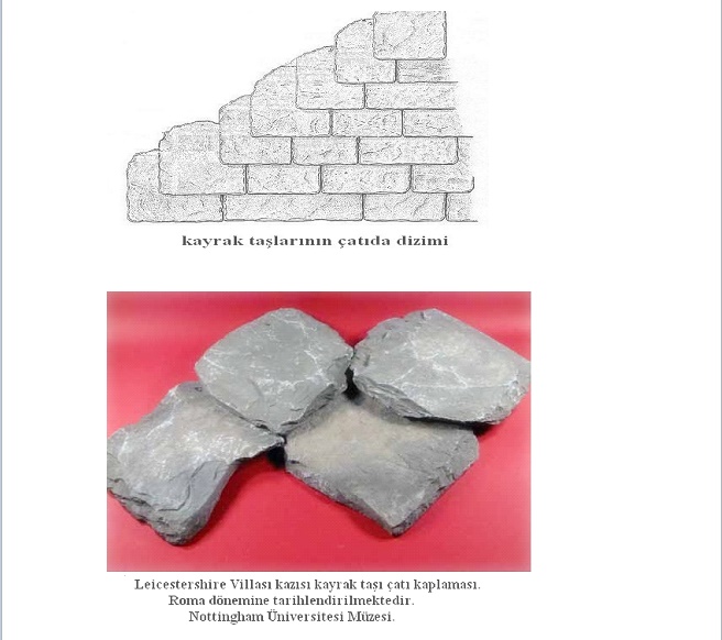 KAYRAK TAŞLARIN ÇATIDA İLK KULLANIMLARI Çatıların kayrak taşlarla kaplanması geleneği arkeoloji dünyasında ihmal edilen konularından biridir. Bu konuda bilimsel araştırmalar son derece kısıtlıdır. Yapılan bilimsel araştırmalara göre çatıları kayrak taşlarla kaplama ilk olarak Tunç Çağında Yunanistan da görülmektedir. Peleponnessos yarımadasının doğusunda bulunan Argolis Körfezi çevresine yayılmış birkaç Erken Hellas Çağı ( M.Ö. 3100/3000–2000 ) yerleşimlerinde rastlanılmıştır. Bu yerleşimlerin başlıcaları; Lerna, Asine,Malthi, Tiryns ve Zygouries dir.