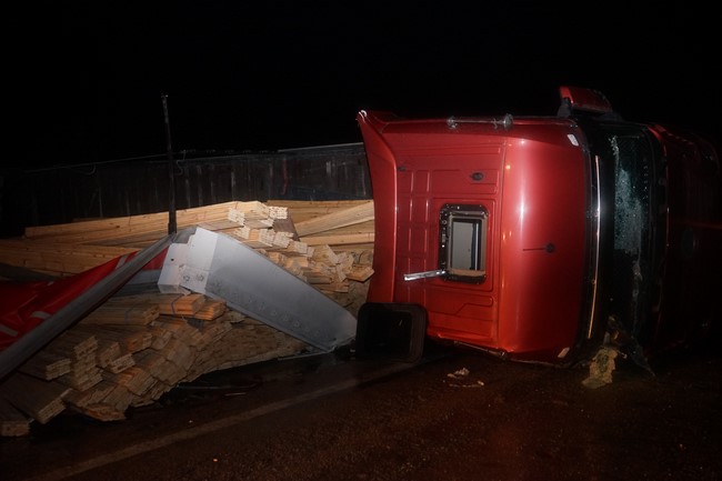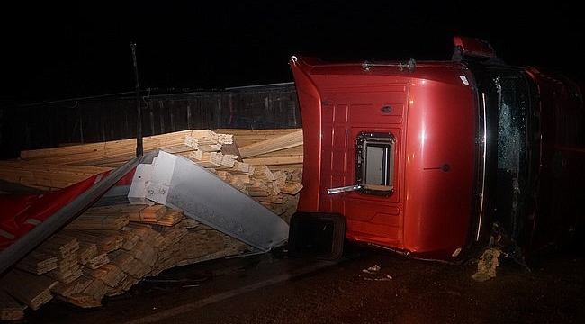Devrilen tırdan yola saçılan lambriler sebebiyle Kastamonu-Sinop kara yolu ulaşıma kapandı.