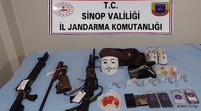 İl jandarma Komutanlığından konu ile ilgili yapılan açıklamada; “Bir süre önce yüzlerine maske takan 2 şüpheli, Durağan ilçesindeki bir akaryakıt istasyonunda tüfekle etkisiz hale getirdikleri çalışanın cep telefonu ile bir miktar parasını gasp ederek kaçtı. Şüphelilerin yakalanması için çalışma başlatan İl Jandarma Komutanlığı ekipleri, söz konusu iki zanlının bir köyde saklandıklarını tespit etti. Operasyonla gözaltına alınan şüphelilerin evlerinde yapılan aramalarda iki tüfek, cep telefonu, maske ve gasp edilen bir miktar para ele geçirildi.” İfadelerine yer verdi.
