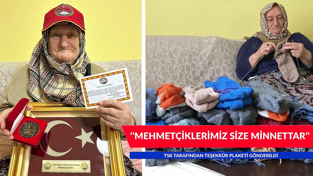 Ördüğü çorapları yıllardır Mehmetçiğe gönderen 86 yaşındaki Hamide teyzeye Türk Silahlı Kuvvetleri tarafından teşekkür plaketi gönderildi.