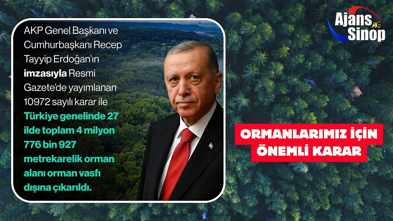 Cumhurbaşkanı Recep Tayyip Erdoğan imzasıyla dün Resmi Gazete’de yayımlanan 10972 sayılı karar ile Türkiye genelinde 27 ilde toplam 4 milyon 776 bin 927 metrekarelik orman alanı orman vasfı dışına çıkarıldı.