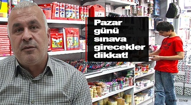 Sinop Esnaf ve Sanatkarlar Odası Başkanı Haydar Gündoğdu, Pazar günü yapılacak olan lgs sınavında kırtasiye esnafının açık olacağını söyledi.