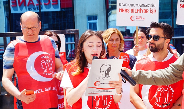 Sinop Ağız ve Diş Sağlığı Merkezi önünde Radyoloji Teknikeri Şems Erdoğan tarafından gerçekleştirilen açıklamada, "Ağız ve Diş Sağlığı Merkezleri, sağlık sistemindeki çarpıklıkların artık gizlenemediği, sorunların en net göründüğü yerlerdir. Ne yazık ki bu merkezlerde sadece dişler değil, emek de çürümektedir. Genel Sağlık-İş olarak, uzun süredir ADSM’lerdeki adaletsizlikleri, eşitsizlikleri ve emek sömürüsünü kamuoyuna duyuruyoruz. Defalarca raporlar hazırladık, eylemler düzenledik, çözüm önerilerimizi ilettik. Ancak Sağlık Bakanlığı, çözüm üretmek yerine kulaklarını tıkamakta; bilimsel ve insani koşullardan uzak, emekçiyi yok sayan uygulamalarıyla sorunları derinleştirmektedir." dedi.