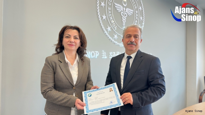 Sinop Valisi Dr. Mustafa Özarslan’ın imzasıyla düzenlenen başarı belgeleri, İl Sağlık Müdürü Dr. Metin Arslan tarafından Başhekim Aylin Ateş’e, İdari ve Mali İşler Müdürü Namık Öztürk’e, Uzm. Dr.Ceren Damla Coşkun’a, Dr. Ahmet Gezer’e takdim edildi.