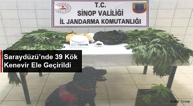 Sinop Valiliği’nin yaptığı açıklamada Saraydüzü’nde 39 kök kenevir bitkisi, 45 gram kubar esrar ve bir adet elektronik hassas terazi ele geçirildi.