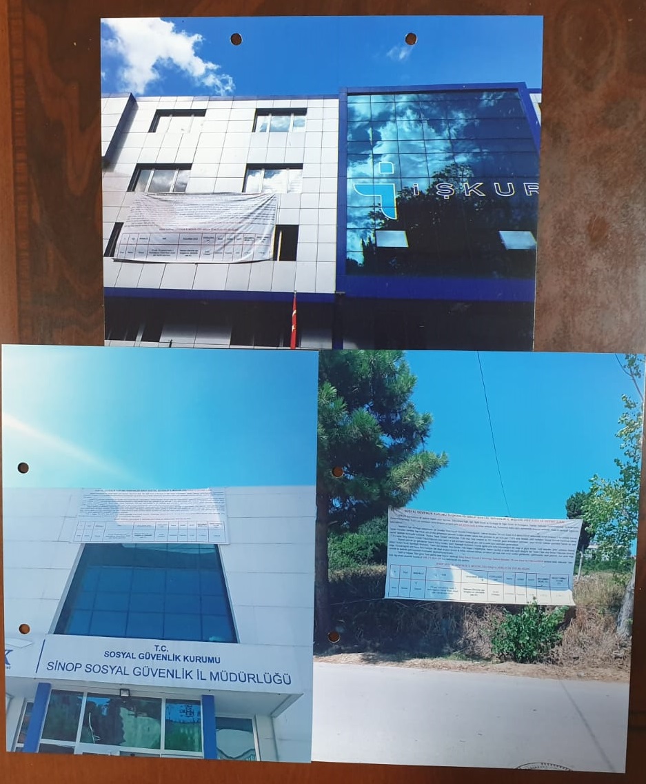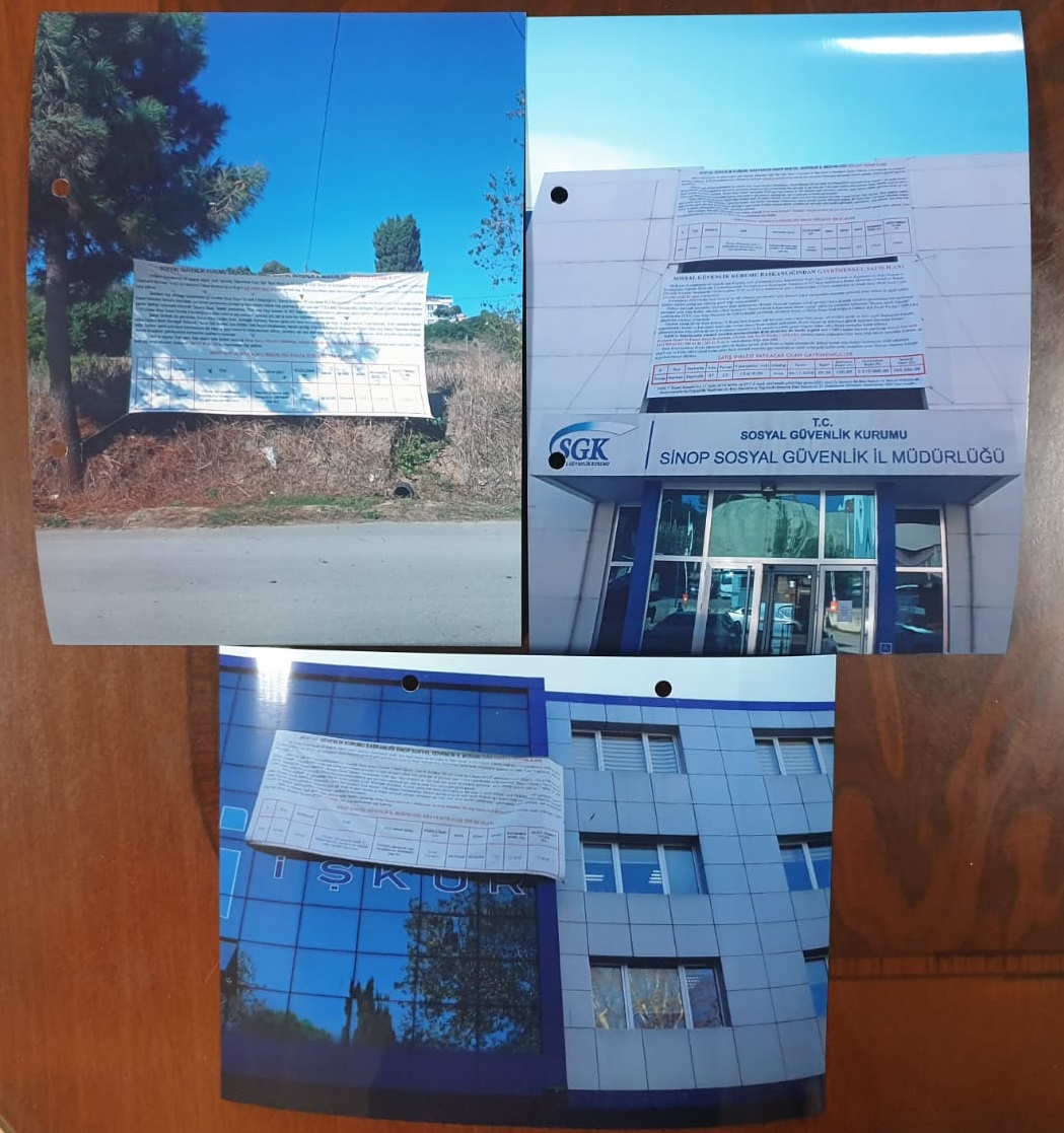 Ajans Sinop Gazetesine ihbar edilen olayı araştıran Gazeteci Deniz Özen, sgk İl Binasının alt tarafında bulunan ve yaklaşık olarak 10 dönümlük arsa ihalesinin nasıl yapıldığını araştırdı. 20 Ağustos 2020 tarihinde yapılan ilk ihalenin ilanı, söz konusu arsaya, SGK İl Müdürlüğü ve İŞKUR binasının dışına asılarak gerçekleştirilmiş. İlan süresi sonrası 9 kişi ihaleye katılmış ve karşılıklı fiyat artırımı ile 33.850 TL’ye katılımcıda kalmış ancak katılımcı yasal süresi boyunca sözleşmeyi imzalamayınca ihale iptal edildi.