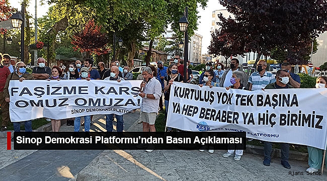 Sinop Demokrasi Platformu, Sinop Uğur Mumcu Meydanı’nda çeşitli konular hakkında basın açıklaması gerçekleştirdi. Gerçekleşen basın açıklamasına sinop demokrasi platformu üyeleri ve bazı vatandaşlar da katıldı.