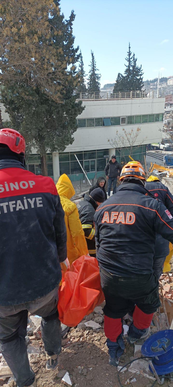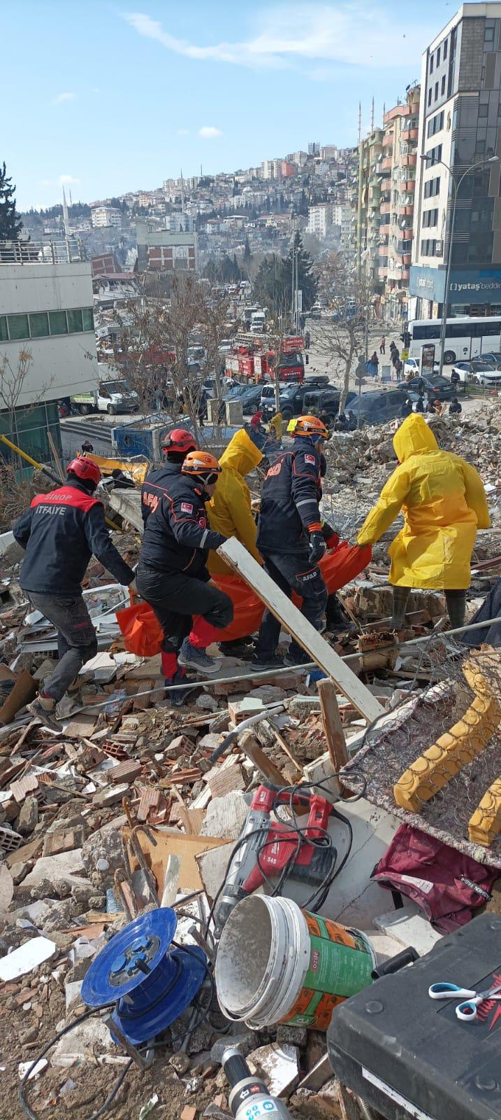 6 Şubat Pazartesi günü yola çıkan Sinop itfaiyesi Kahramanmaraş’ta depremzedelere ulaşabilmek adına çalışmalarını sürdürüyor.