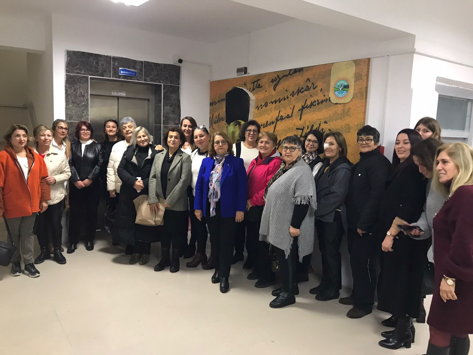 Kent Konseyi Başkanı Fatma Ustacan ve Kadın Meclisi Başkanı Handan Yılmazer meclis üyelerine Atatürk rozeti hediye etti.
