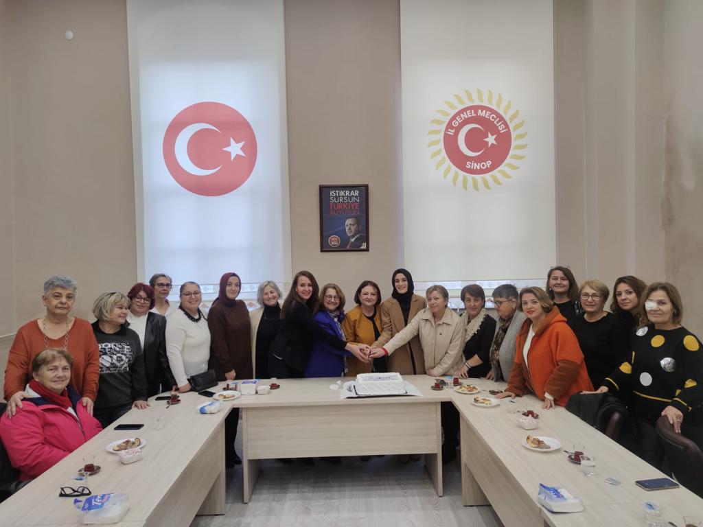 Elinin hamuruyla erkeğin işine karış. Karış ki dünya sevgi hamuruyla yoğurulsun. Karış ki aşk olsun, karış ki devrim olsun diyerek sözlerine başlayan Sinop Kent Konseyi Başkanı Fatma Ustacan; “5 Aralık 1934 yılında kadınlara seçme ve seçilme hakkı veren yasanın kabulü ülkemizde her yıl kadın hakları günü olarak kutlanmaktadır. Bizde bu anlamlı günün 88. yıl dönümünü hep birlikte gururla kutladık. Kent Konseyi olarak bugün ilk olarak Belediye Meclisi’nde gurubu bulunan AK Parti ve Cumhuriyet Halk Partili meclis üyelerini ziyaret edip sohbet ettik. Kadın meclis üyelerine Atatürk rozeti hediye ettik. İkinci durağımız ise İl Genel Meclisi Başkanı Yakup Üçüncüoğlu ve İl Genel Meclisi Üyesi Canan Atabek’in davetleri üzerine İl Genel Meclisi oldu. Burada, Kent Konseyi ve kadın meclisi olarak, AK Parti Kadın Kolları ve Cumhuriyet Halk Partisi Kadın Kolları Başkanları ve yönetim kurulu üyeleriyle bir araya geldik. Günün anlam ve önemine binaen pasta kestik. Tek gündemimiz kadının siyasetteki yeriydi. Kadının siyasetteki rolü, görevi her zaman çok önemlidir. Bizlerde bugün kadınların siyasette daha aktif görev almasını konuştuk. Kadının olduğu yerde üslup her zaman daha iyi olur. Bizlere bu özel günü Atatürk armağan etti. Bugün kadınlar özgürce seçme ve seçilme hakkına sahipse Ulu Önder Gazi Mustafa Kemal Atatürk sayesindedir. Bizlerde Sinop Kent Konseyi olarak Atatürk’ümüzü kalbimizde taşımamız gerektiği anlayışıyla Atatürk rozeti hediye ettik. Bu güzel günün birlikte daha da anlamlı olduğunu düşünerek, Kadın Belediye Meclis Üyelerimize, İl Genel Meclisi Başkanı Sayın Yakup Üçüncüoğlu’na ve İl Genel Meclisi’nin tek kadın üyesi olan Canan Atabek’e teşekkür ediyoruz.” İfadelerine yer verdi.