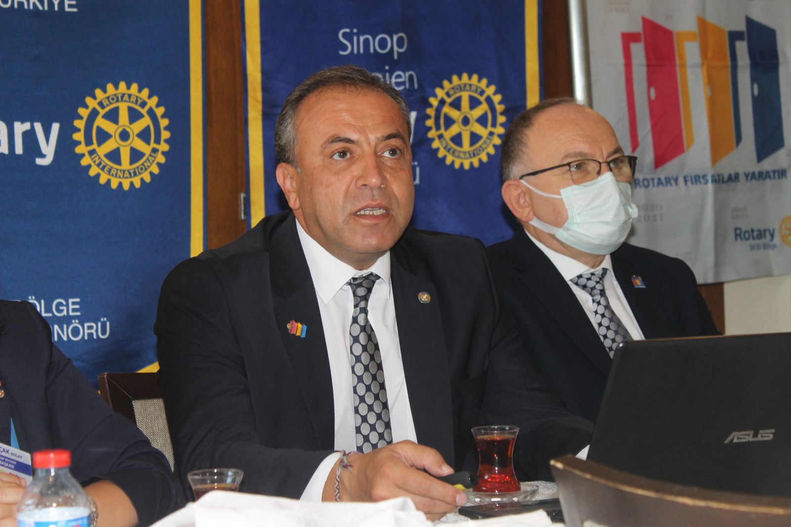 Ardından Sinop’a gelen 2430. Bölge Guvenörü Serhan Antalyalı, Rotary kuruluşunun ne olduğundan bahsederek; “Rotary, insanlara hiçbir karşılık beklemeden yardım etmeyi hedeflemiş, dünyada barış ve iyiliği yaymak adına tüm dünyada bir araya gelmiş sivil toplum örgütüdür. Yani hedefimiz insanlara hizmet etmek. Hepimizin ortak özelliği iş ve meslek insanı olması. Uluslararası Rotary, dünyanın en büyük sivil toplum örgütüdür. Türkiye’de ilk Rotary kurma çabaları, ulu önder Atatürk’ün döneminde başlanıyor. Ancak ulu önder Atatürk, izin vermiyor. Gerekçesi çok doğru ve yerinde. Çünkü kulübümüz ilk kurulduğu zaman 80 yıla yakın kadın üye almıyor. Atatürk de bu eşitliğe aykırı gerekçesiyle Türkiye’de kurulmasına izin vermiyor. 1955 yılında dönemin meclis başkanı Refik Koraltan’ın oğlunun çabalarıyla Ankara’da kuruluyor. 1 milyon 200 bin üzerinde üyesi var, 200’den fazla ülkede Uluslararası Rotary’ye bağlı Rotary kulüpleri ile çalışmalarını sürdürüyor. Türkiye de bu ülkelerden birisi.” ifadelerini kullandı.