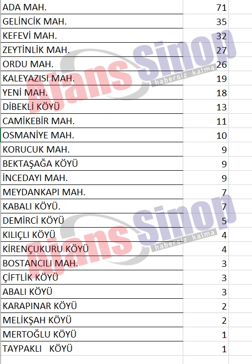 AJANS sİnop GAZETESİNİN SİZLER İÇİN HAZIRLADIĞI TAM LİSTE ŞU ŞEKİLDE;