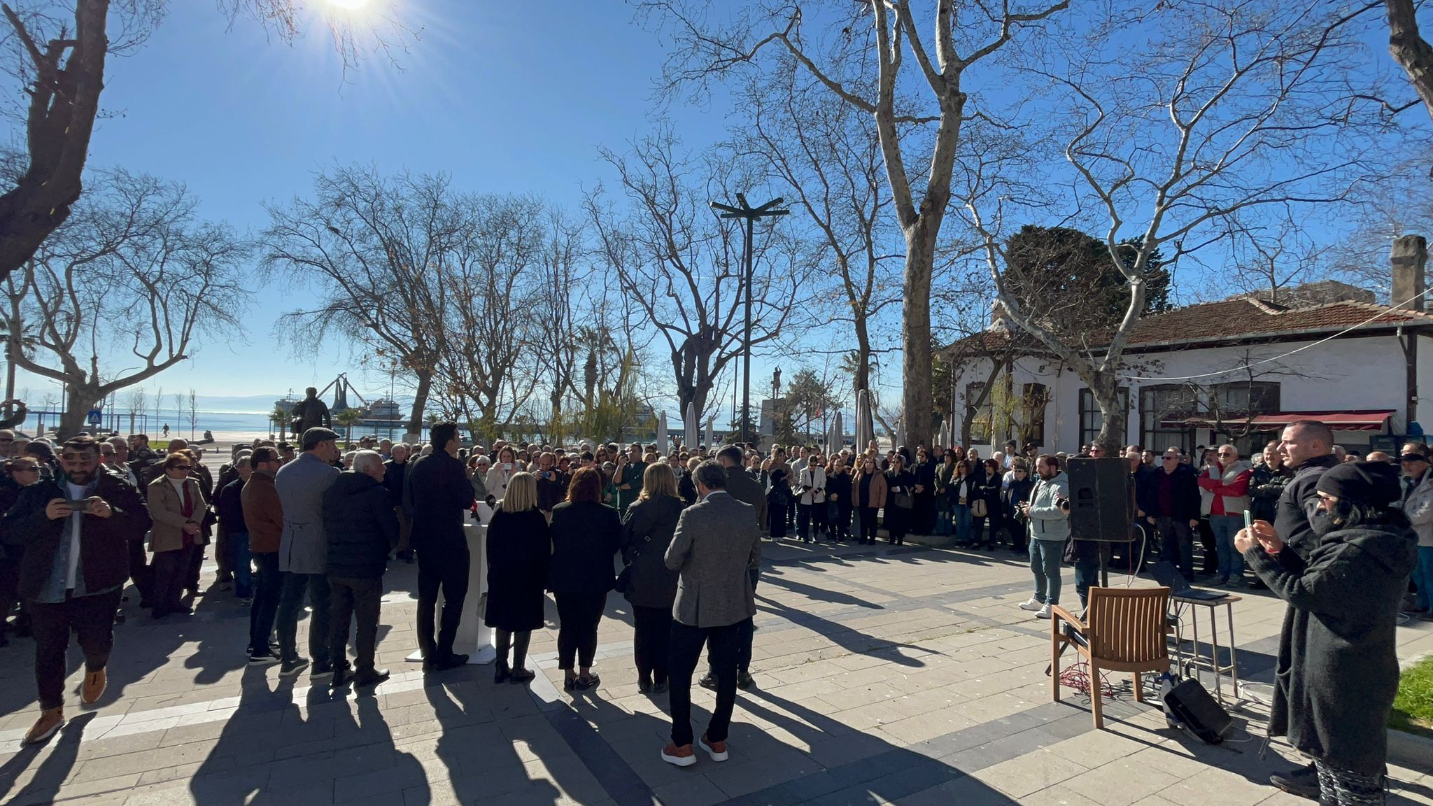 Bu meydanda bulunan insanlar, halkımız, vatandaşlarımız, yol arkadaşlarımız iktidarın sindirimi, baskılama ve yıldırımın politikasını boyayacak mıyız? Bunu da kendileri de çok iyi biliyorlar. Güzel bir söz var biliyorsunuz. Hepimiz ülkemiz açısından, geleceğimiz açısından çocuklarımız için korkuyoruz. Ancak cesurluk demek, insanın korktuğu zamanlarda dahi doğru olduğuna inandığı şeyin yapması ve konuşmasıdır. O yüzden diyoruz biz, bizi kimse yıldıramayacak, sindiremeyecek. Geçmişte de Türkiye Cumhuriyeti vatandaşları ve karşı bu topraklarda pek çok baskı dönemleri denende ancak her zaman sonunda kazanan halk oldu. Yine halk kazanacak. Gazeteciliğin suç olmadığını söylemek zorunda kalan basın mensupları bugün aramızdalar. Bizler her birimizin her zaman hakkını savunmaya devam edeceğiz. Zaman zaman geliyor. Az önce sohbet ederken de konuştuk. Zaman zaman birbirimizi de eleştiriyoruz. Ama hiçbir zaman birbirimize olan saygımızdan ödün vermiyoruz. Bugün kanunsuz emirlere uygulayanlar, kanunsuz emirlere direnmeyenler, sesini çıkarmayanlar. Eğer bugün bu meydanda bu insanlar toplanıyorsa bilin sizin için de toplanıyor. Niye toplanıyor? Çünkü baskı kurulan yerlerde, ülkelerde bir gün sıra size de geliyor. Alman Papaz Martin Niemöller'in bir sözü var biliyorsunuz meşhur bir söz 2. Dünya Savaşı'nda.