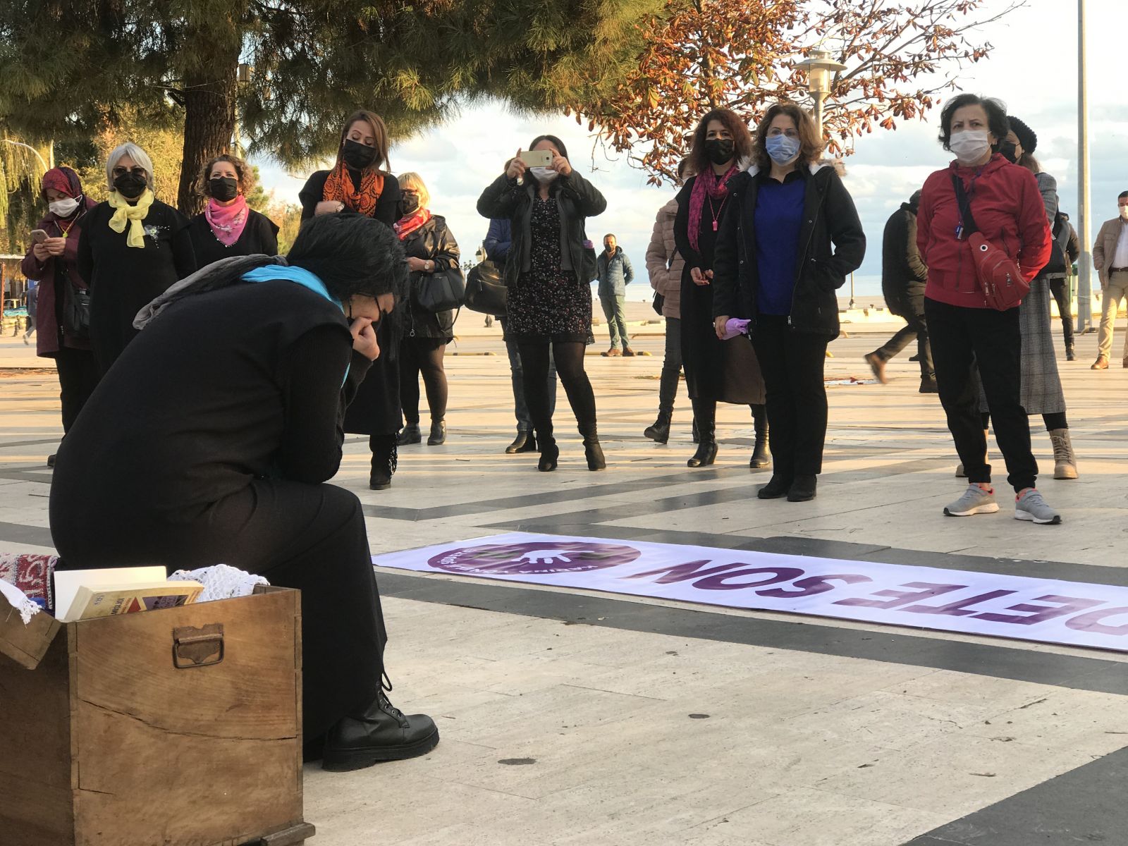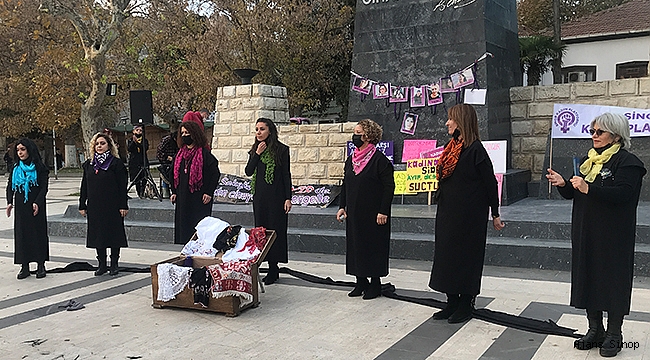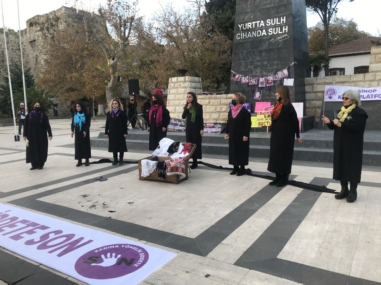 İskele Meydanı Atatürk anıtı önünde gerçekleştirilen sokak tiyatrosuna Sinop Kadın Platformu üyelerinin yanı sıra vatandaşlar da katıldı. Sergilenen tiyatro vatandaşlar tarafından büyük ilgi topladı.