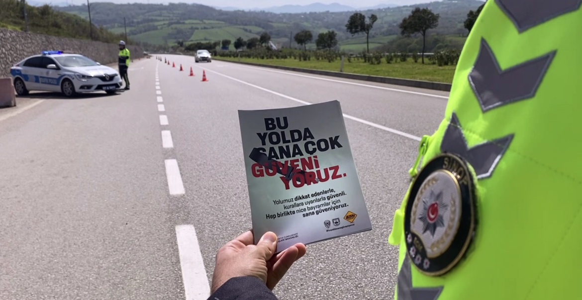 Sinop İl Emniyet Müdürlüğü Trafik Şube Müdürlüğü'ne bağlı ekipler, Ramazan Bayramı'na sayılı günler kala bayramda yoğun ziyaretçi akınına uğrayan Sinop'un farklı noktalarında trafik denetimleri düzenleyerek şoförlere kurallara uymaları konusunda uyarılarda bulundu. İçişleri Bakanlığı tarafından hazırlanan ‘Bu yolda sana çok güveniyoruz' broşürlerini dağıttı.