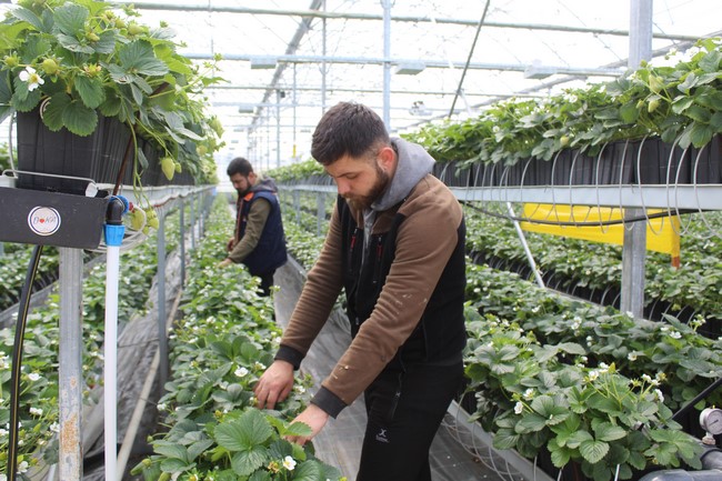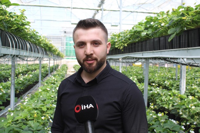 Topraksız çilek üretiminin normal çileğe göre avantajlarının daha fazla olduğunu belirten sera sorumlusu İrfan Kümeç, “Topraklı üretimden bunu ayıran en büyük özelliği cocopit olması. Hindistan cevizinin öğütülmüş kabuğudur. Suyun süzülme oranının daha kolay olduğu, kök çürüklüğü gibi toprakta karşılaştığımız hastalıklara nazaran daha az karşılaşıyoruz. İstediğimiz derecede besleyebiliyoruz, bu yüzden cocopit tercih ediliyor” diye konuştu.