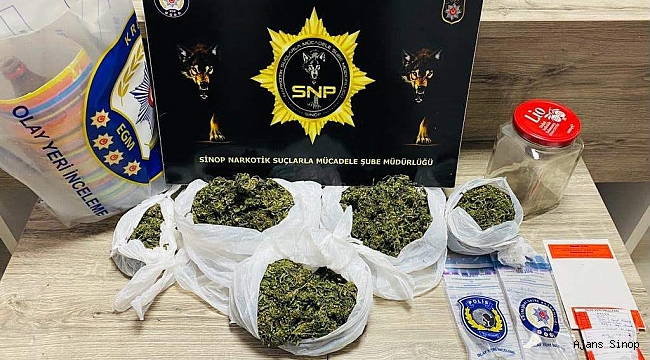 Sinop İl Emniyet Müdürlüğü Narkotik Suçlarla Mücadele Şubesi tarafından düzenlenen uyuşturucu operasyonunda bir kişi gözaltına alındı. Emniyet Müdürlüğü ekiplerince şüpheli şahsın adresine düzenlenen operasyonda 383,3 gram esrar maddesi ele geçirildi. Olayla ilgili bir şüpheli gözaltına alındı.