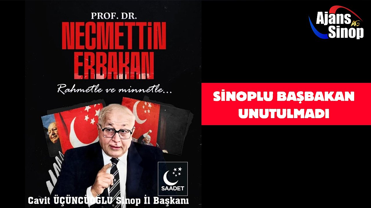 Saadet Partisi Sinop İl Başkanı Cavit Üçüncüoğlu yayınladığı yazılı mesajla Milli Görüşün Efsane Lideri Sinoplu Merhum Başbakan Prof.Dr.Necmettin Erbakan'ı 15. ölüm yıldönümünde rahmet ve minnetle andı.