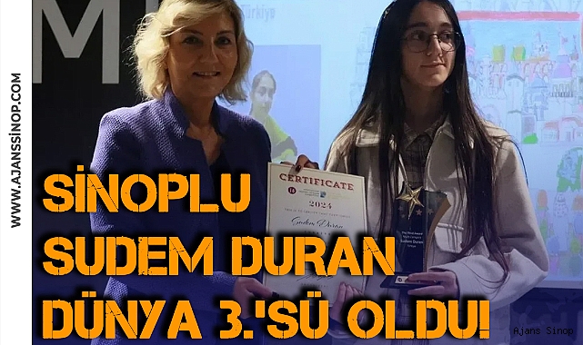 Sinop Fen Lisesi 9. sınıf öğrencisi olan Sudem Duran, "İstanbul’da Turist Olmak" temalı yarışmaya katıldı. Duran, uluslararası düzeyde birçok eserin yarıştığı organizasyonda jüri üyelerinden tam not alarak üçüncü sırada yer aldı.Başarılı öğrenci, ödülünü İstanbul Beyoğlu Tarihi Metrohan’da düzenlenen törende, Türkiye Otelciler Birliği (TÜROB) Başkanı Müberra Eresin’in elinden aldı.Sudem Duran, aldığı ödülün kendisi için önemli bir motivasyon kaynağı olduğunu dile getirerek, sanatla ilgilenmeye devam edeceğini belirtti. Okul yönetimi ve öğretmenleri de öğrencinin başarısının Sinop ve okul adına gurur verici olduğunu ifade etti.