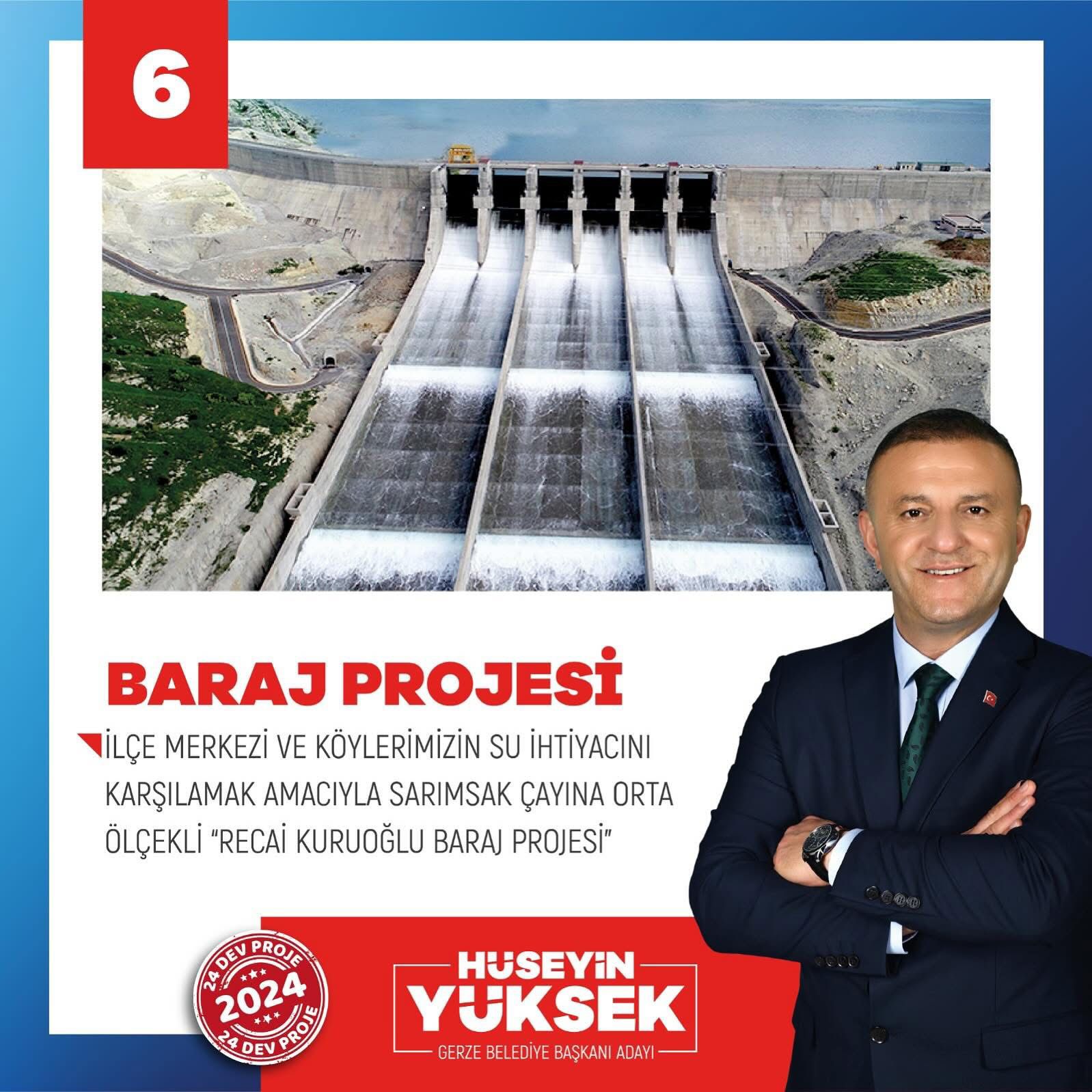 Gerze’de Belediye Başkan Adayı olan İş İnsanı ve Siyasetçi Hüseyin YÜKSEK; “DSİ tarafından yapılan Gerze İçme Suyu İsale Hattı’nın günü kurtarmaktır. Seçim döneminde de vaatlerimiz arasında yer alan Sarımsak Çayından nemalanarak Recai KURUOĞLU Barajının yapılmasıyla birlikte Gerze ve Köylerinin su sorunu tarih olacaktı. Bugün geldiğimiz noktada, mevcudu dahi karşılayamayan Sinop su isale hattına birde Gerze bağlandı. Şimdi su sorunu daha da büyüyecek. Günü kurtarmak için değil, yarınlar için kalıcı çözüm üretmek gerek. 453 Milyon TL para yatırıldı ve sorun daha da büyütüldü. Hesaplamalar yanlış yapıldı. Gerze için Recai KURUOĞLU Barajı olmazsa olmaz. Bunun yapılması lazım. Aksi takdirde bu sorun çözüme kavuşmaz ve daha da büyür.” Dedi.
