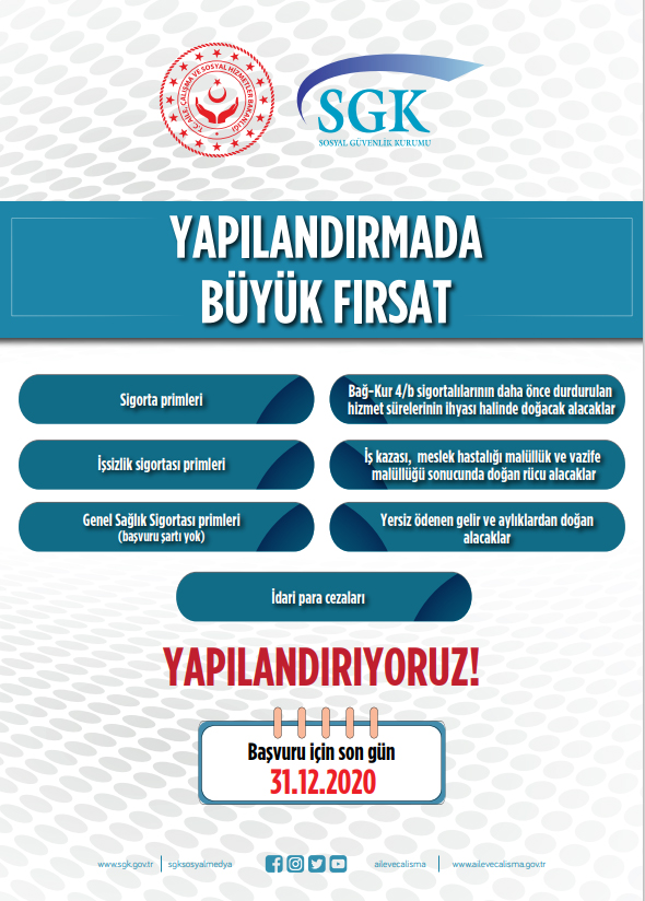 Şahin, yapılandırmaya giden vatandaşların ise 31.12.2020 tarihine kadar başvuru yapmalarını belirtti.