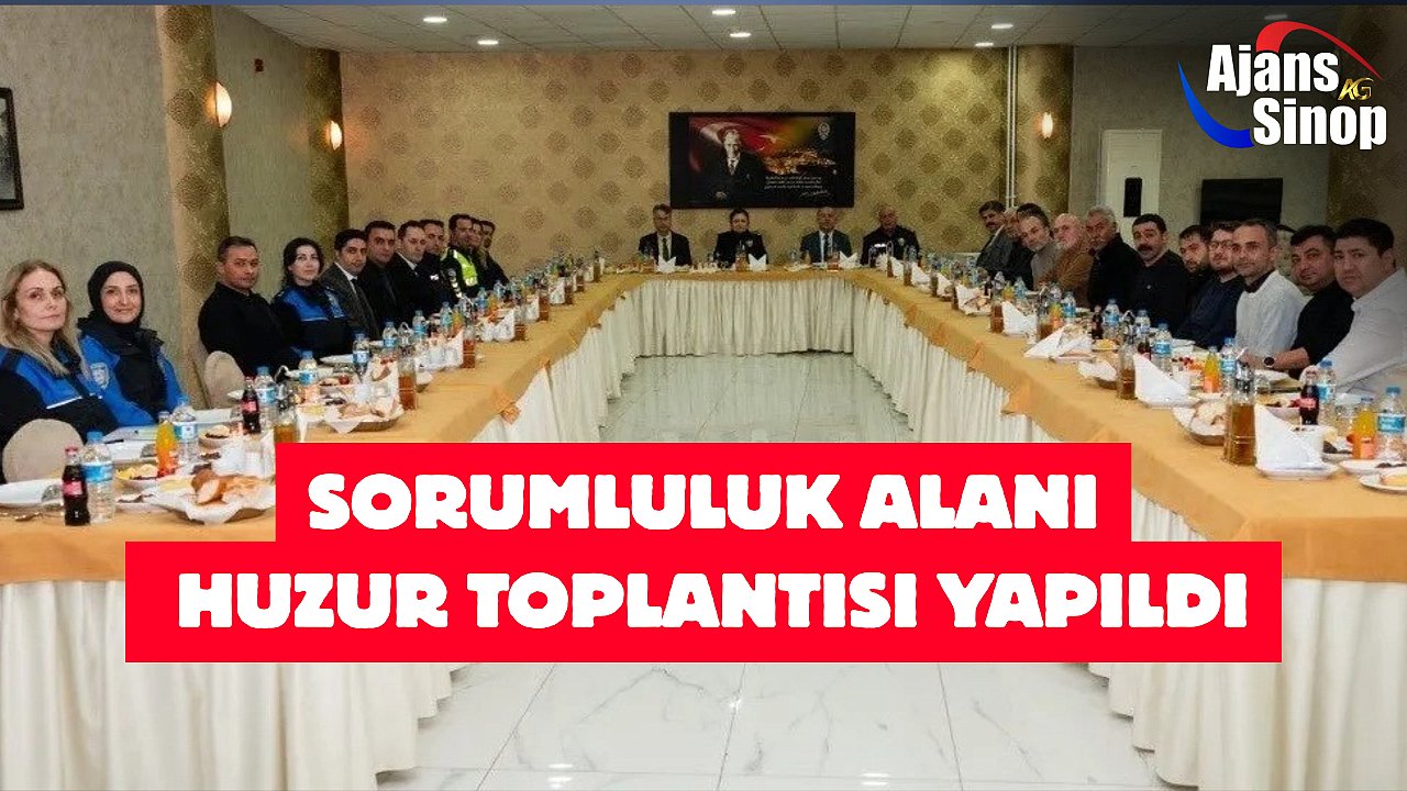 Sinop’ta İl Emniyet Müdürü Sibel Kılıçoğlu başkanlığında"Sorumluluk Alanı Huzur Toplantısı" yapıldı. Zabıta müdürü, ilgili birim amirleri, oda başkanları ile muhtarların da hazır bulunduğu toplantıda kent genelinde güvenlik ve asayişe ilişkin mevcut durumun değerlendirildiği, mahallelerde yaşanan sorunlar, esnafın talepleri ve çözüm önerilerinin istişare edildiği kaydedildi.