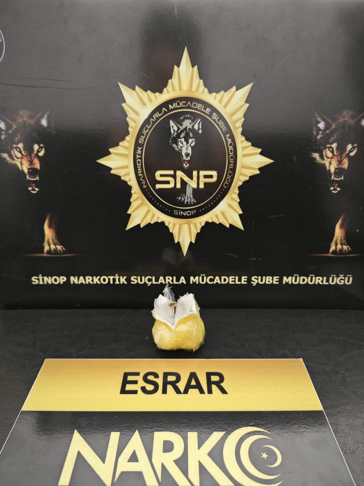 Sinop İl Emniyet Müdürlüğü Narkotik Suçlarla Mücadele Şube Müdürlüğü ekipleri tarafından şok uygulama yapıldı. Uygulamada şüpheli bir şahsın yapılan üst aramasında 26.32 gram esrar maddesi ele geçirildi. Şüpheli hakkında gerekli yasal işlemler başlatıldı.