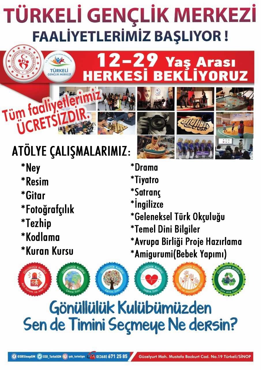 Kurslara katılmak isteyenlerin 20 Haziran’a kadar Türkeli Gençlik Merkezine başvuruda bizzat gelerek bulunması gerektiği bildirildi.