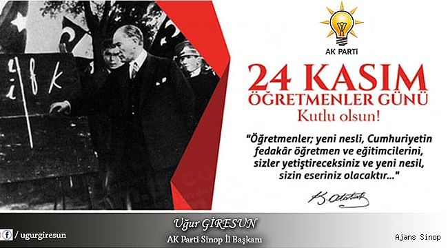 AK Parti Sinop İl Başkanı Uğur Giresun 24 Kasım Öğretmenler Günü olması vesilesiyle bir mesaj yayımladı.
