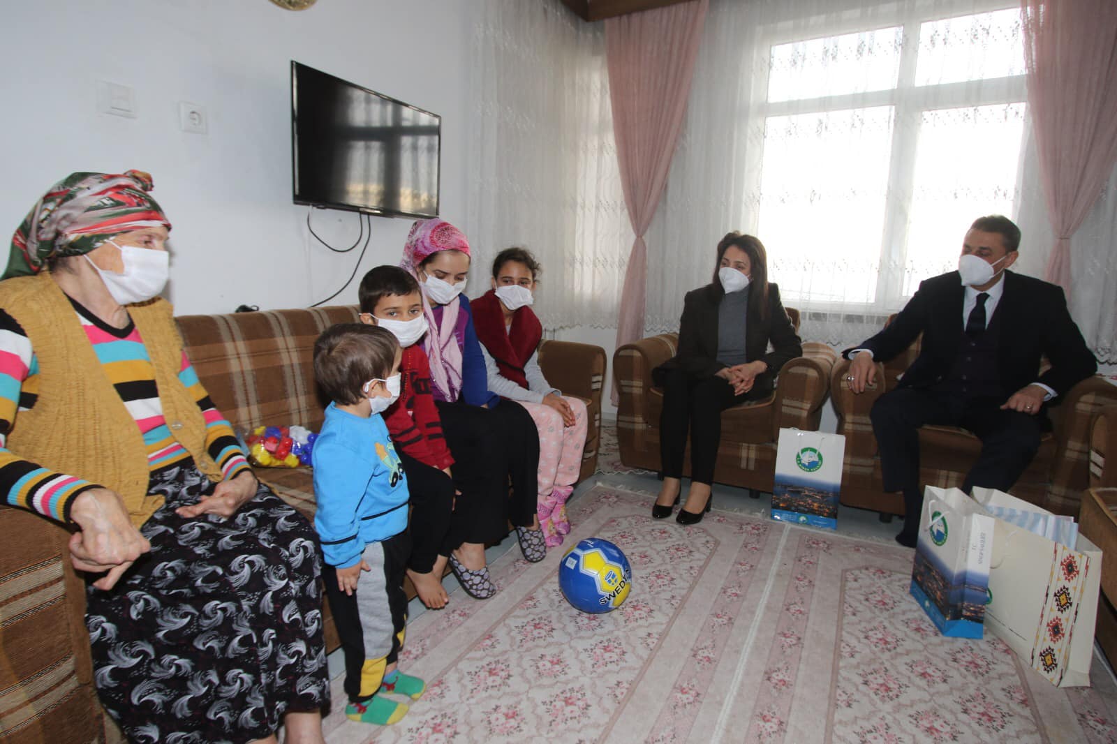 Aile fertleriyle bir süre sohbette bulunan Vali Erol Karaömeroğlu ve Eşi Filiz Karaömeroğlu ziyaret ettikleri ailelerin çocuklarına çeşitli hediyeler vererek, mutlu olmalarına vesile oldular.