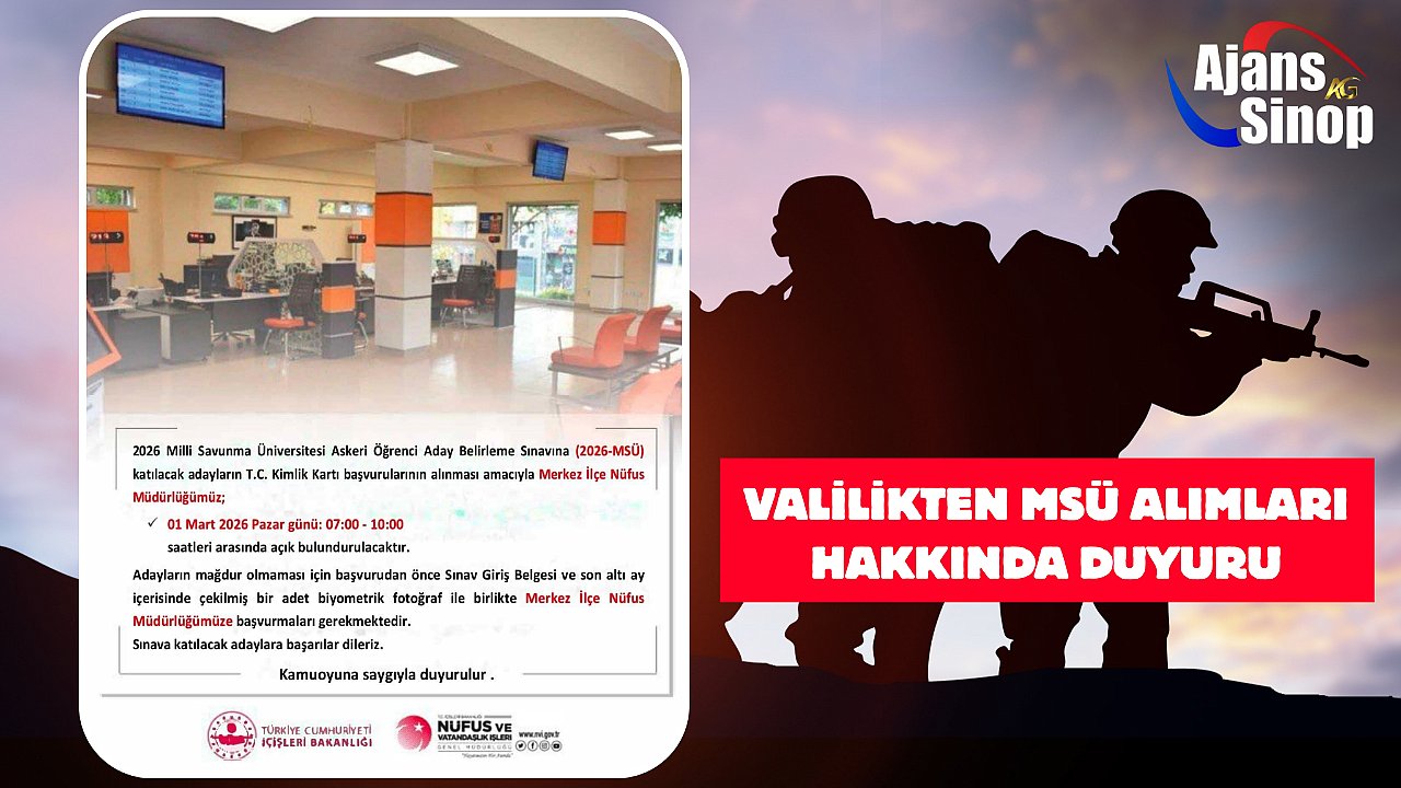 GÜNDEM Yayınlanma: 27 Şubat 2026 - 21:04 VALİLİKTEN MSÜ ALIMLARI HAKKINDA DUYURU GÜNDEM 27 Şubat 2026 - 21:04 Yorumlar Dinle Yazdır A Büyüt A Küçült Yorumlar VALİLİKTEN MSÜ ALIMLARI HAKKINDA DUYURU YORUMLAR FACEBOOK adlı kullanıcıya cevap x Gönder İlginizi Çekebilir GERZE FEDERASYONU'NA ÖNEMLİ ZİYARET ERFELEK'TE POLİS HAFTASI KUTLANDI ÇAKAN'LARDAN VALİ ÖZARSLAN'A ZİYARET ZİRAİ DON UYARISI YAPILDI Son Haberler METEHAN BEBEK'E ANLAMLI DESTEK SİNOP ÜNİVERSİTESİ MART AYI FAALİYETLERİ ÇÖP KONTEYNERLERİ KALDIRILDI TEKNE TURLARI ARTIK 250 TL SİNOP ÜNİVERSİTESİ SÜPER LİG'DE ÖZEL İDARE EKİPLERİ GÖREV BAŞINDA ÖZEL İDARE EKİPLERİ GÖREV BAŞINDA