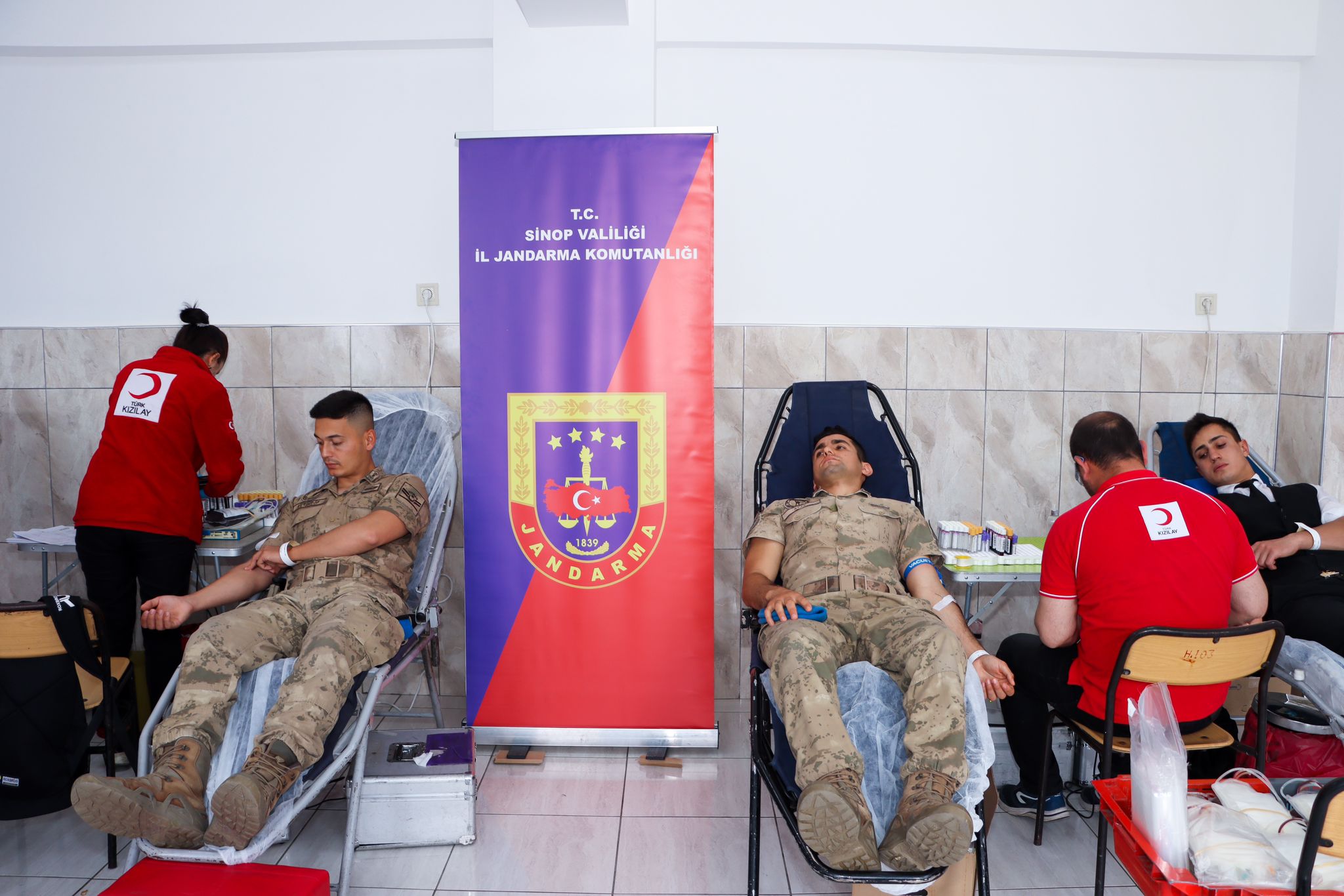 İl Jandarma Komutanlığı, Jandarma Teşkilatının kuruluşunun 184. Yıl dönümünde örnek bir davranışa imza attı. Düzenlenen etkinlikler kapsamında eriyen kan stoklarını göz önünde bulunduran Sinop İl Jandarma Komutanlığı görevli personeli tarafından Vatan için Can, Millet için kan sloganıyla Kızılay’a kan bağışı yaptı.Bu adım ise kamuoyunda takdir ile karşılandı. Kızılay yetkilileri tarafından kan bağışında bir süredir azalma yaşandığının belirtildiği bu günlerde Jandarma Komutanlığı’nın örnek davranışı adete can suyu oldu.