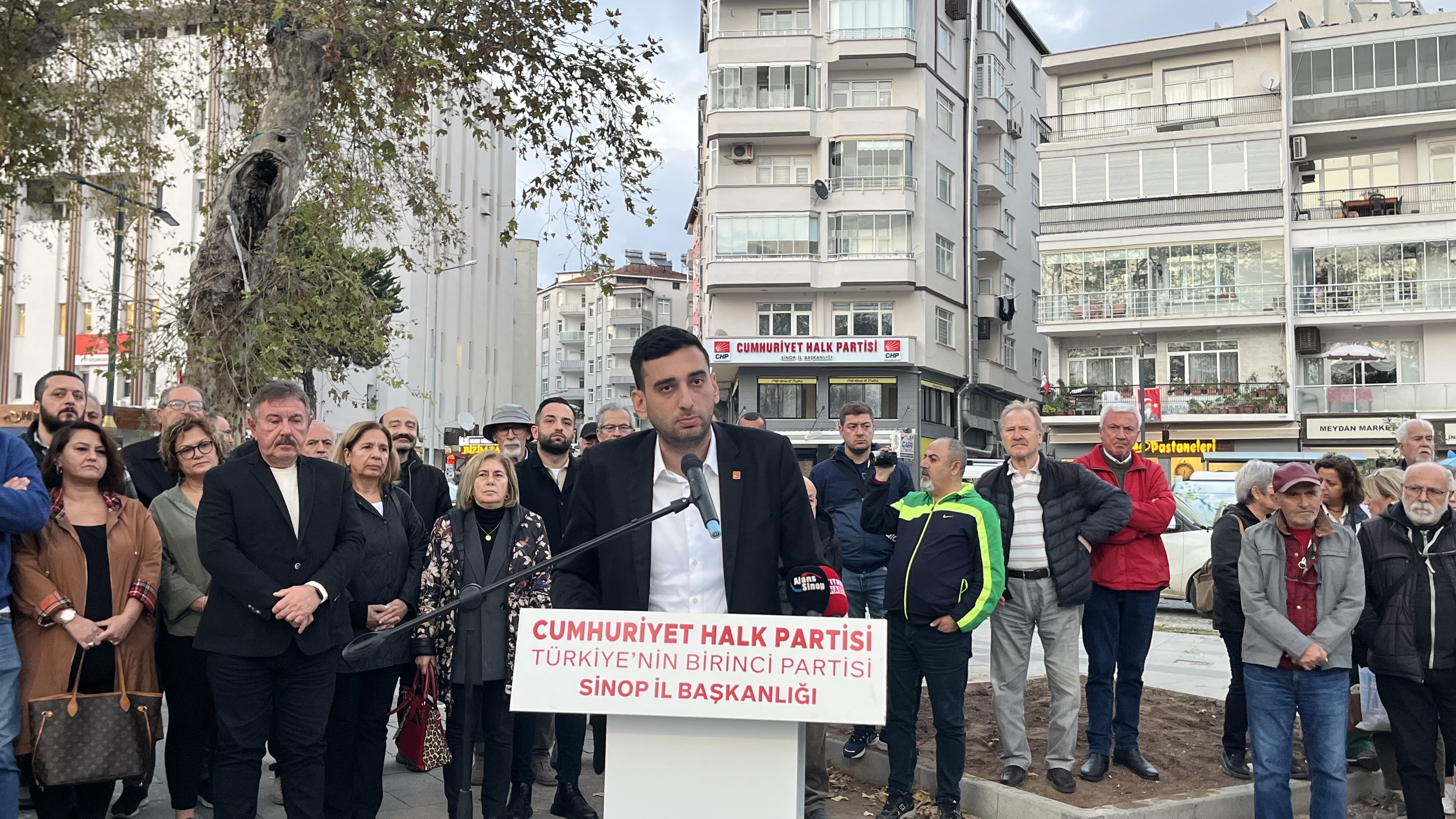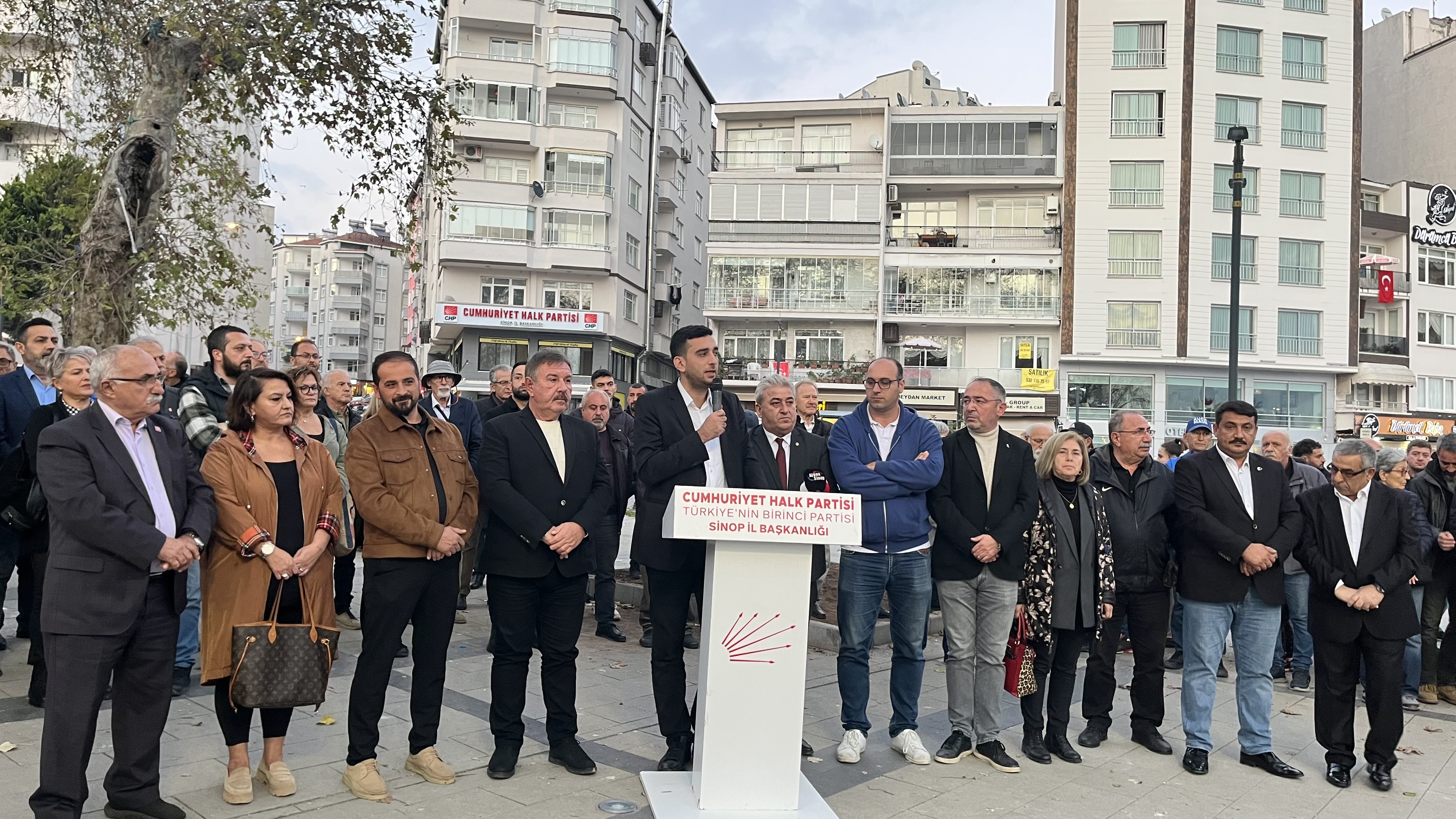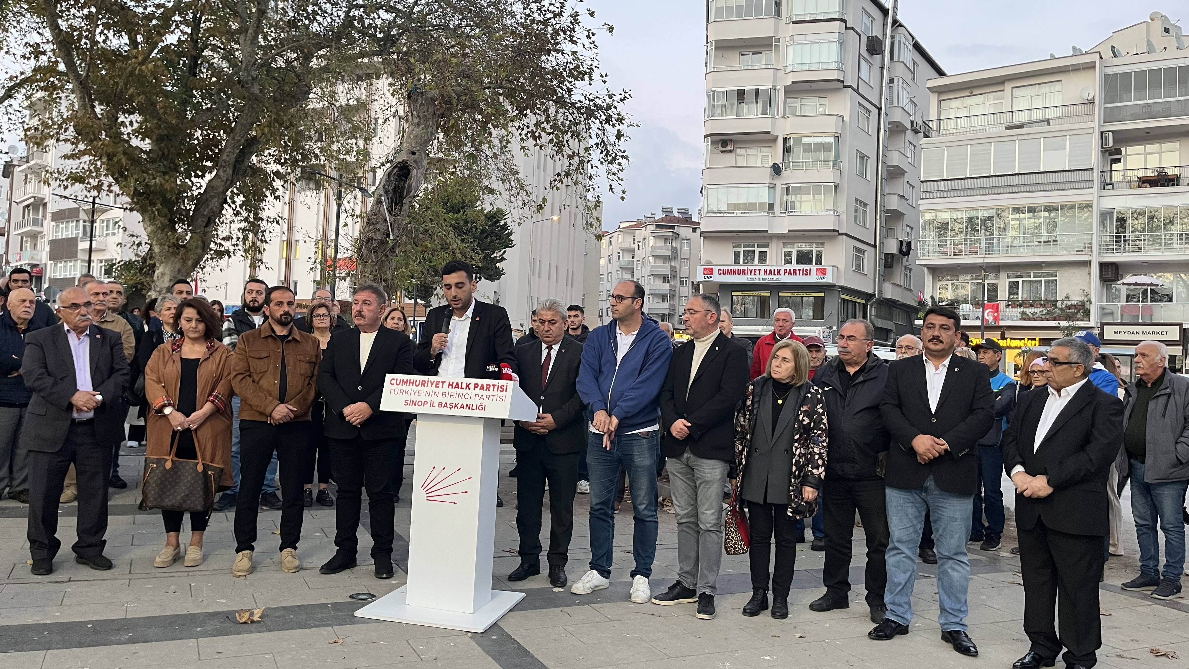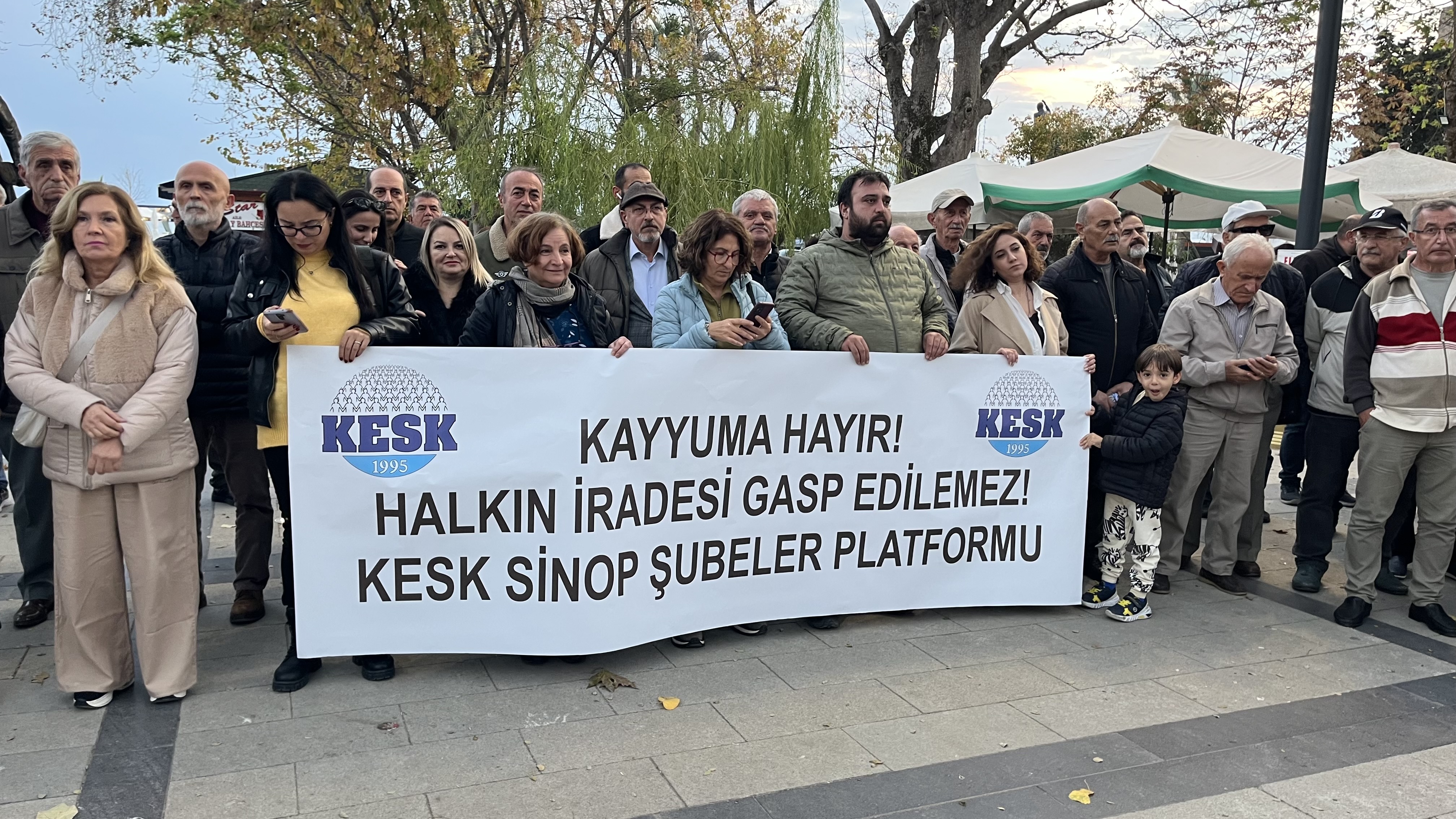 Açıklamaya, CHP Merkez İlçe Başkanı Samet Bayrak, Belediye Başkan Yardımcıları Aysun Öz Sönmez, Hikmet Karaduman Ayancık Belediye Başkanı Hayrettin Kaya, Gerze Belediye Başkanı Osman Belovacıklı, İlçe Başkanları, İl Genel ve Belediye Meclis Üyeleri, partiller ve KESK üyeleri katıldı.