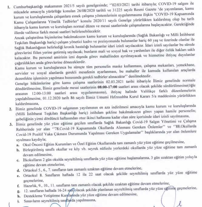 GÜNDEM Yayınlanma: 02 Mart 2021 - 21:02 YENİ İL HIFZISSIHHA KURULU KARARLARI! GÜNDEM 02 Mart 2021 - 21:02 Yorumlar Dinle Yazdır A Büyüt A Küçült Yorumlar Sinop Valisi Erol Karaömeroğlu Başkanlığında toplanan İl Umumi Hıfzıssıhha Kurulunda yeni kararlar alındı. Alınan kararlar ise şu şekilde; # si̇nop# kararlar# koronavi̇rüs# genelge# yeni̇ kararlar YORUMLAR FACEBOOK adlı kullanıcıya cevap x Gönder İlginizi Çekebilir GERZE FEDERASYONU'NA ÖNEMLİ ZİYARET ERFELEK'TE POLİS HAFTASI KUTLANDI ÇAKAN'LARDAN VALİ ÖZARSLAN'A ZİYARET ZİRAİ DON UYARISI YAPILDI Son Haberler METEHAN BEBEK'E ANLAMLI DESTEK SİNOP ÜNİVERSİTESİ MART AYI FAALİYETLERİ ÇÖP KONTEYNERLERİ KALDIRILDI TEKNE TURLARI ARTIK 250 TL SİNOP ÜNİVERSİTESİ SÜPER LİG'DE VALİ EROL KARAÖMEROĞLU SİNOP İÇİN BAKIN NE DEDİ? VALİ EROL KARAÖMEROĞLU SİNOP İÇİN BAKIN NE DEDİ?